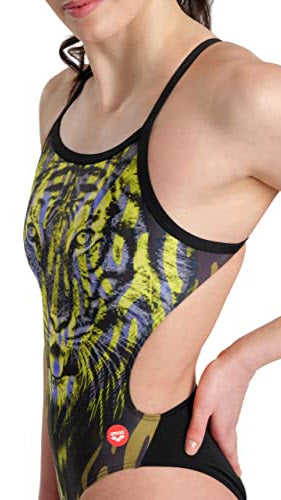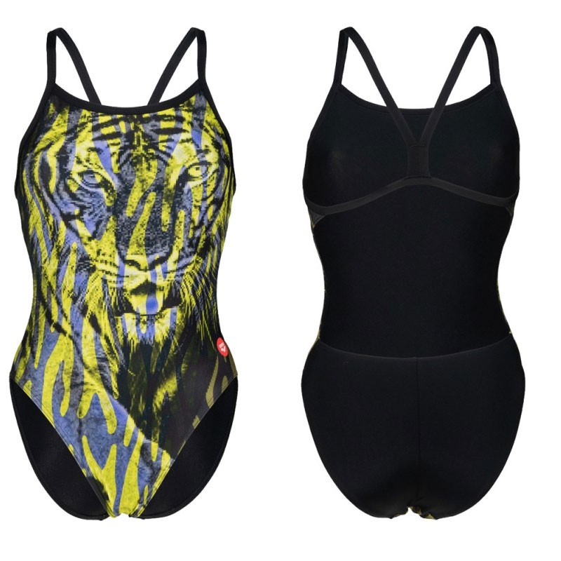 El traje de baño Arena Crazy Tiger pertenece a la colección Crazy Arena, diseñada para quienes buscan romper moldes con estampados atrevidos y ultra coloridos. Con una imponente estampa de tigre en tonos amarillos, ofrece un look impactante y toda la comodidad para entrenamientos intensivos.