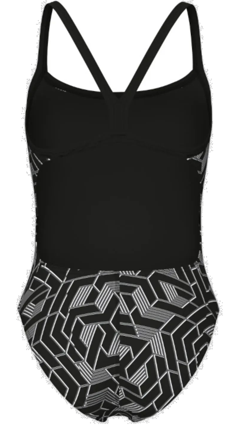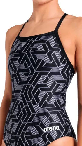 El traje de baño Arena Escape Lightdrop es ideal para entrenamientos intensivos y para quienes buscan un look lleno de energía. Su estampa geométrica impactante te hará destacar dentro y fuera del agua, mientras su confección con tejido eco-friendly Maxlife Eco asegura resistencia, durabilidad y confort.