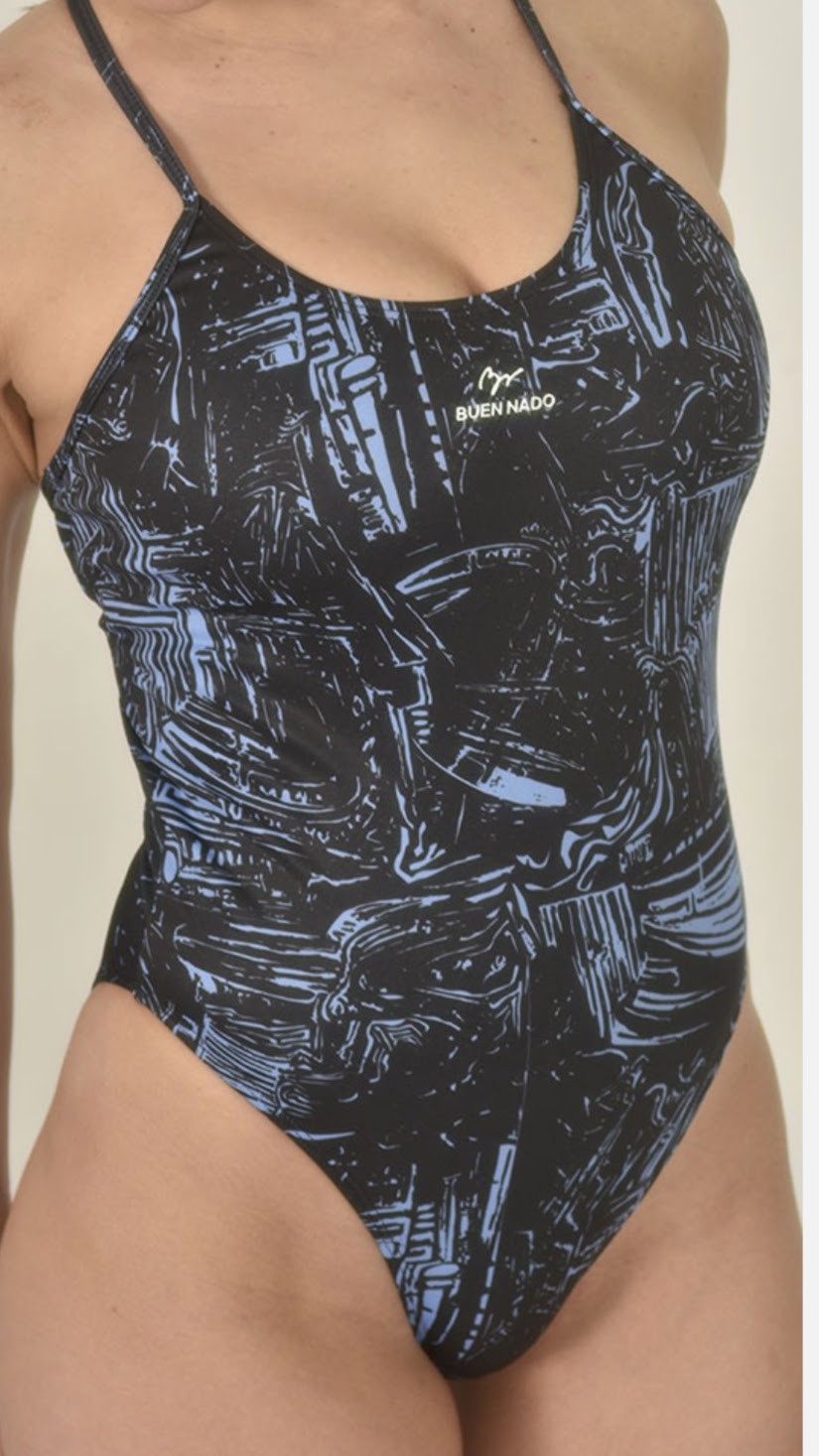 MALLA PINCELADAS CELESTES, bretel fino 3391 BN